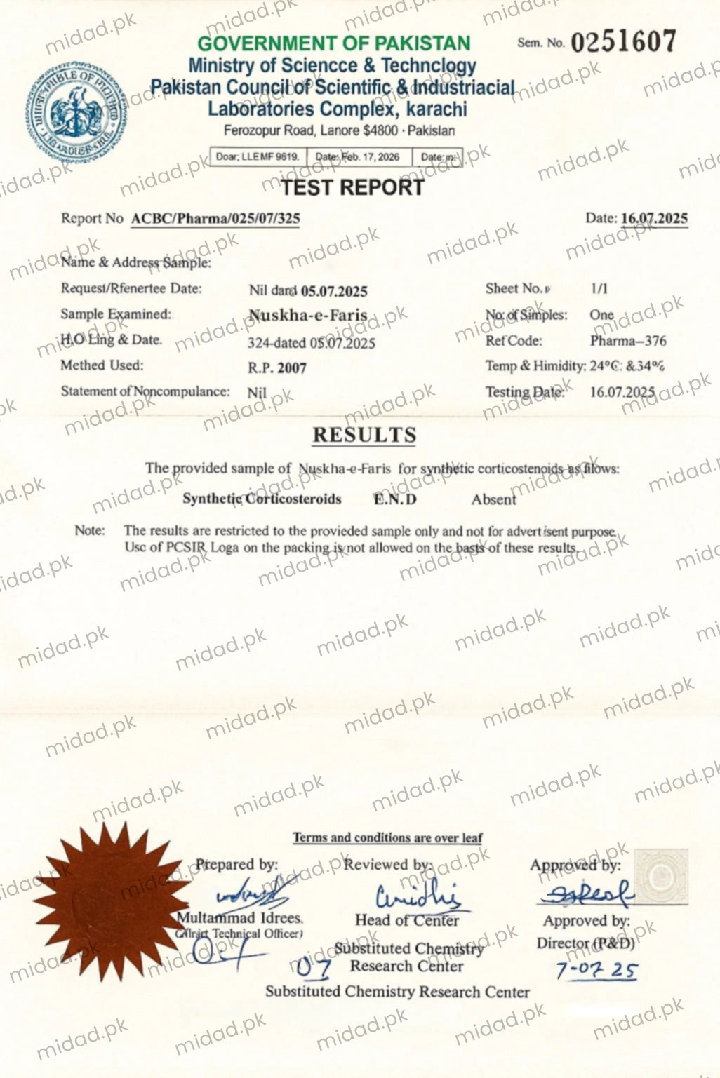 This herbal medicine is officially approved by PCSIR (Pakistan Council of Scientific and Industrial Research), a leading government body known for testing and verifying health products across Pakistan. This approval confirms that our product has passed strict quality, safety, and performance standards.